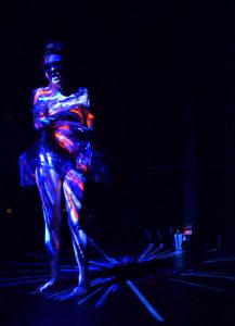 Hiperfabulária Tropical retoma a pesquisa solo de Carmen Jorge, propondo um corpocaos potencializado pelo cruzamento de linguagens do corpo, palavra e sons. Utiliza como dispositivos cênicos a técnica do Popping (vertente do Hip Hop), como disparador de um estado de corpo que se “autotuna” controlando sobreposições entre velocidades de contrações, emissão de textos/sons, dança contemporânea e danças sociais, numa espécie de fluxo de anti-fluxo de movimento.